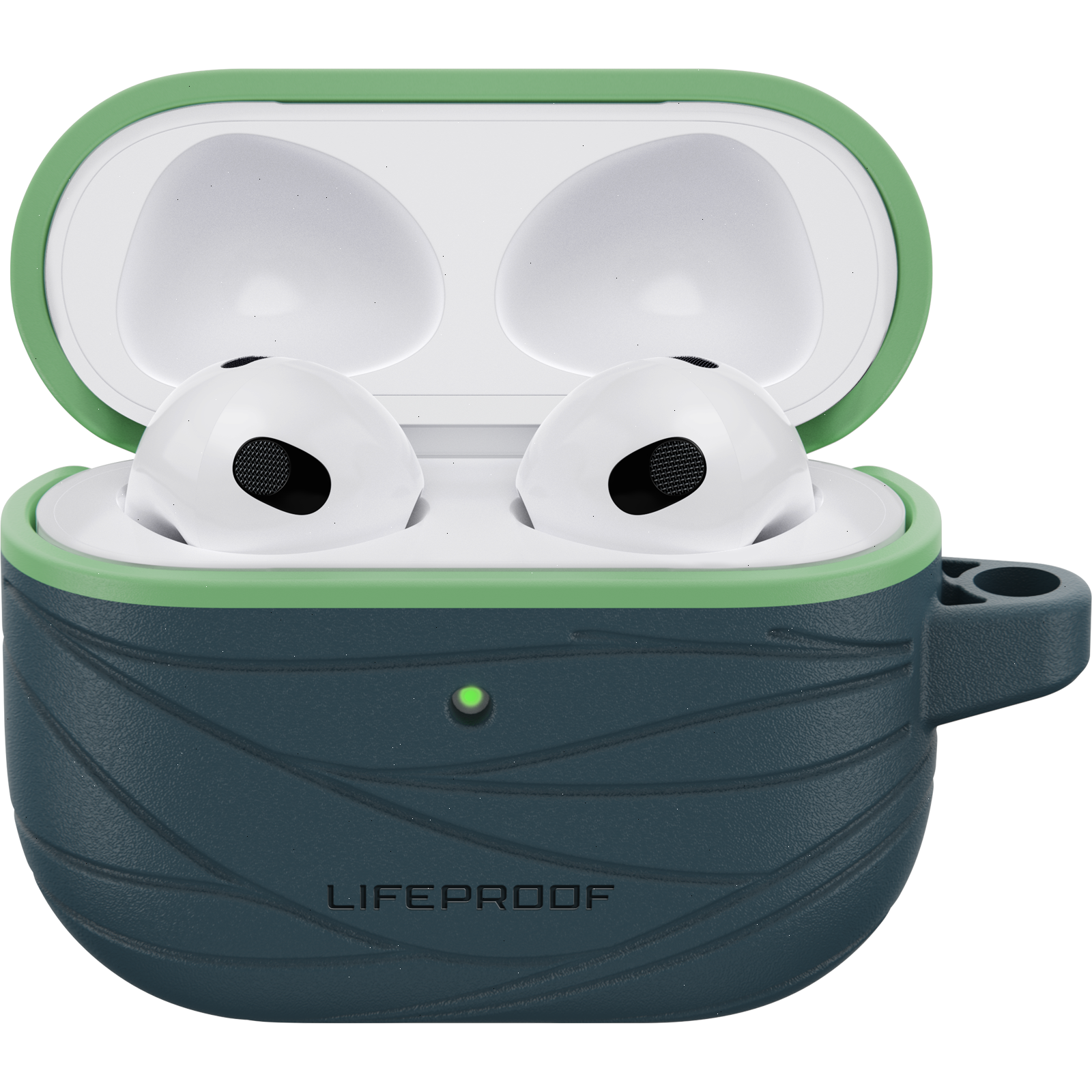 Keep your charging case safe from harm with the LifeProof Case for Apple AirPods (3rd gen). Built from 75% ocean-based recycled plastic, it delivers edge-to-edge protection while helping to heal our seas. Easily attach it anywhere with a quick-clip carabiner, and park it on a Qi-wireless charger at the end of the day for cordless refueling.